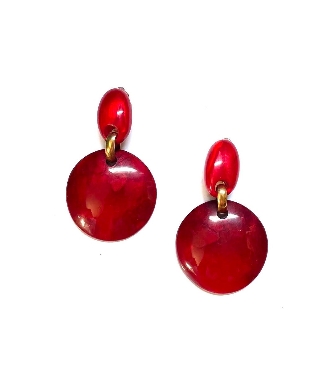 Beautiful round earrings in shimmering red color by Dominique Denaive Paris. This classic model matches in any outfit, and looks always gorgeous.