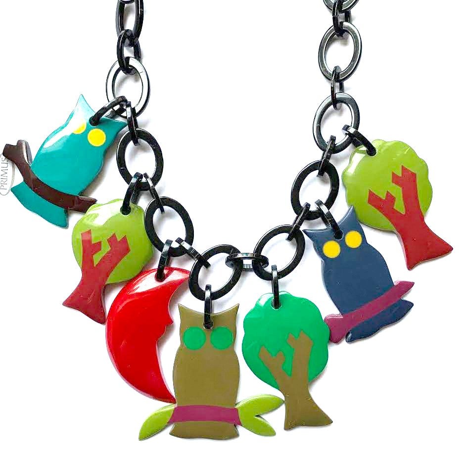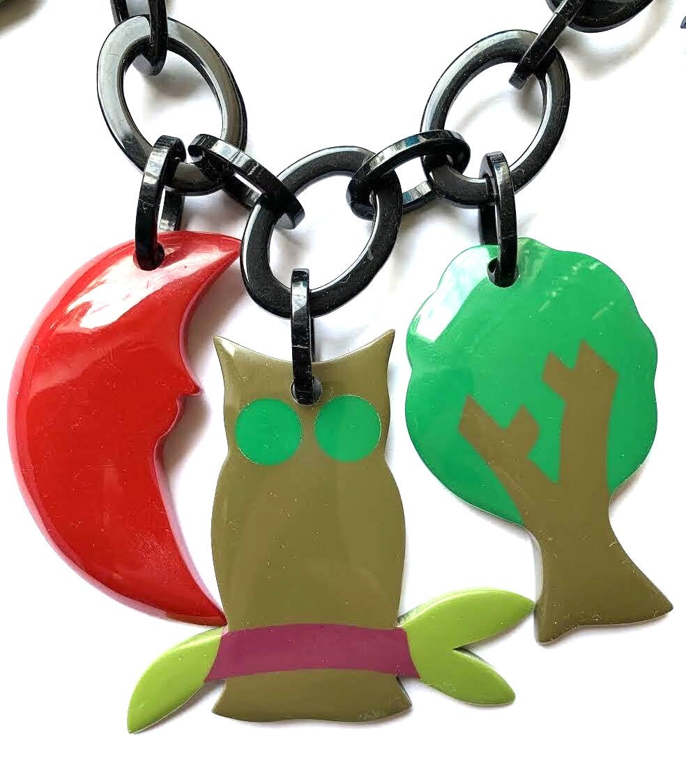Night owls necklace in beautiful dark colors by Marion Godart Paris. A wonderful presentation of the designer's special style.